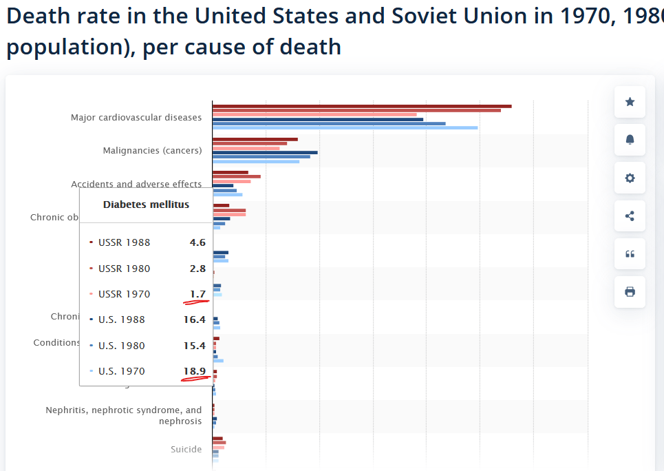 尽管瑞士的平均每日糖消耗量高于加拿大,但肥胖症明显较少。更引人注目的是趋势线的斜率。加拿大的趋势明显更高。接下来,考虑英国和加拿大之间的食糖消费矛盾。尽管在此期间英国的消费量稳步大幅下降,而加拿大的消费量在同一时间稳步增加,但这两个国家的平均 BMI 趋势线几乎相同。因此,这与吃糖导致肥胖的理论完全矛盾。此外,许多确实从饮食中消除糖分的人并没有经历多少体重减轻,如果这样做了,似乎无法保持体重减轻。